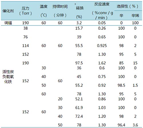 表1:活性炭負(fù)載氧化鐵納米粒子在辛醇氧化脫氫反應(yīng)中的催化性能。